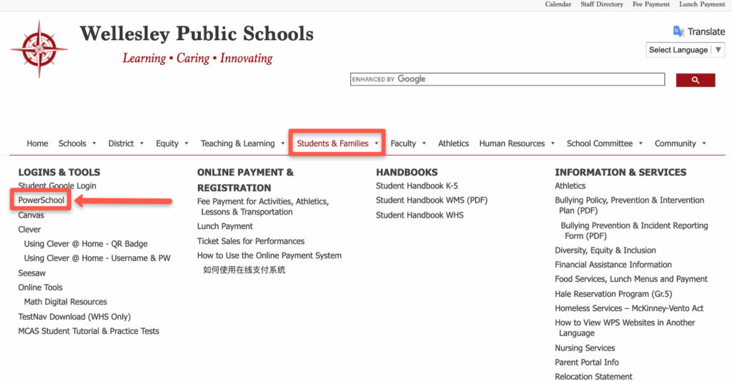 Go to the Parent Portal at https://wellesley.powerschool.com