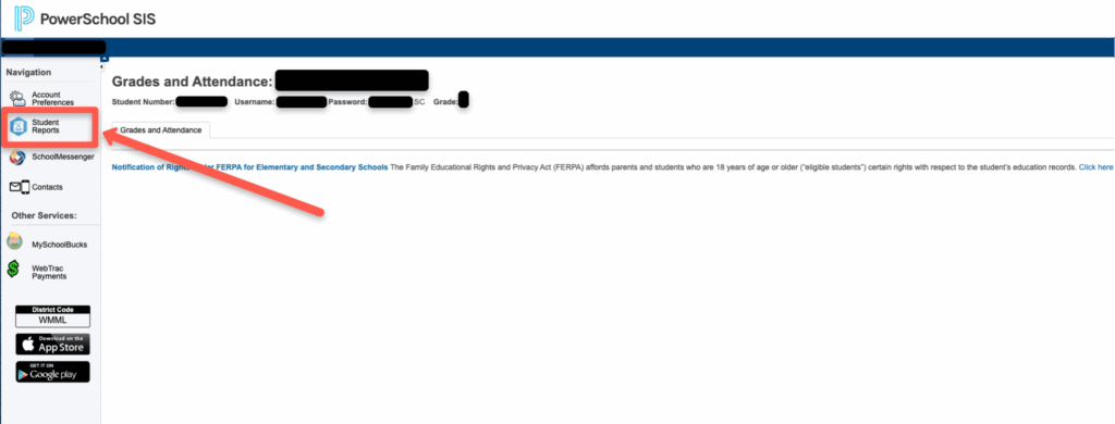 Once logged into the Parent Portal, click on Student Reports on the left sidebar.
